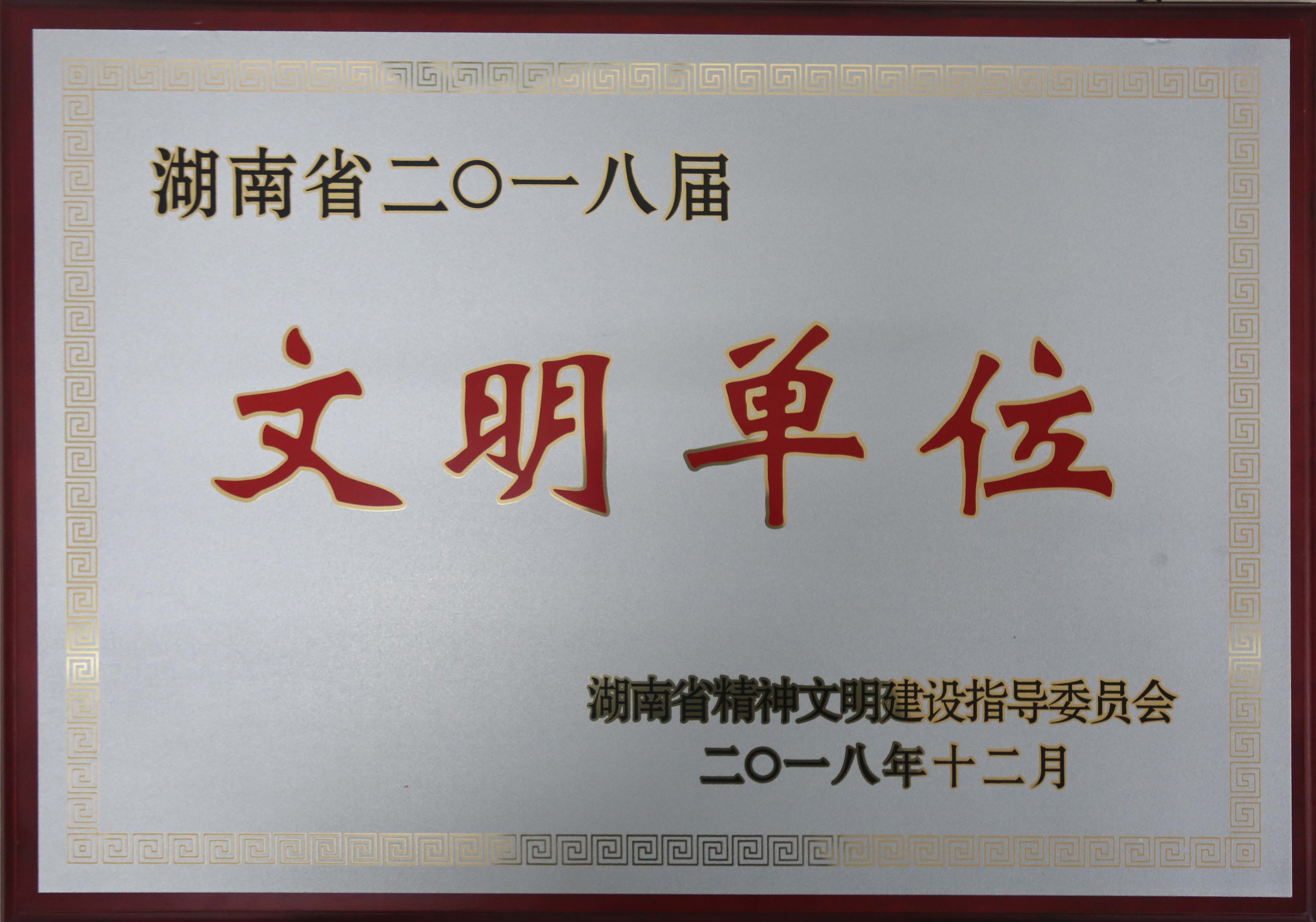 2018年12月被湖南省精神文明建設指導委員會評為“湖南省二〇一八屆文明單位”